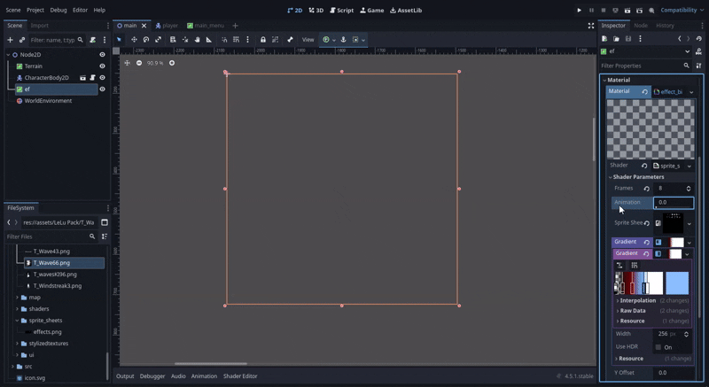 A simple shader that allows you to smoothly interpolate animation frames in a sprite sheet. This makes your 16 frame VFX look smooth! As a bonus, the ability to use a gradient has also been added!
